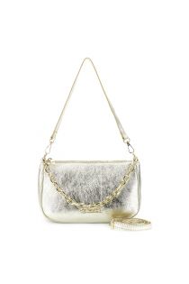 sac bandoulière en cuir laminé avec anse en chaîne dorée light gold