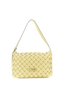 Sac bandoulière contemporain en tissu tissé effet nappa orné de détails tressés. fermeture zippée intérieur doublé avec poche et logo métallique sur le devant. idéal pour le jour comme pour le soir. dimensions : 37 cm (longueur) × 23 cm (hauteur) × 11 cm (profondeur).