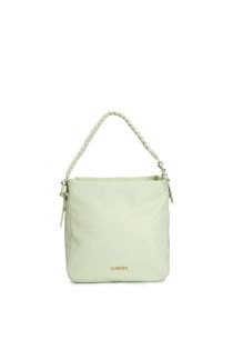 sac bandoulière souple avec bandoulière tressée, accessoire émaillé et fermoirs green
