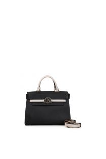 Sac bowling rigide bicolore à l’allure raffinée et élégante avec faux rabat et passant avec accessoire CN. Poignée et bandoulière en couleur contrastante.