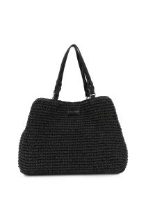 sac cabas à bandoulière en crochet tricoté à la main avec fermeture magnétique et mousqueton black