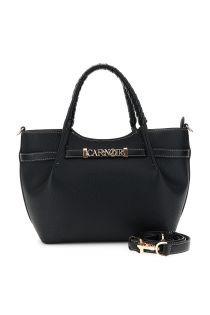 sac cabas à effet cuir plissé avec finitions en cuir grainé et simili cuir black