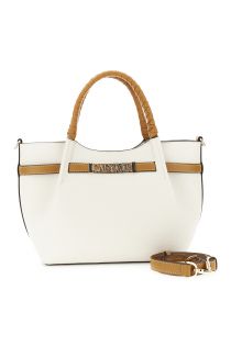 sac cabas à effet cuir plissé avec finitions en cuir grainé et simili cuir cream/leather