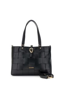 sac cabas aspect cuir avec empiècement tissé et boucle à boucle black