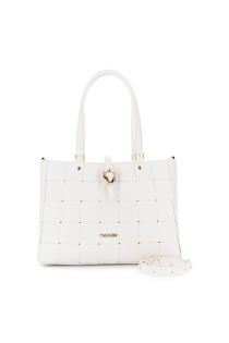 sac cabas aspect cuir avec empiècement tissé et boucle à boucle white