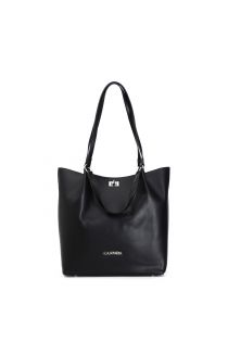 sac cabas double matière avec accessoire fermeture et breloque cafènoir black/rock