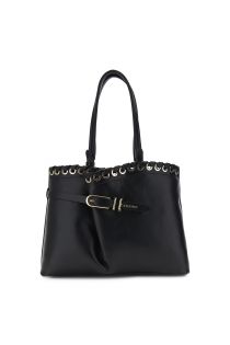 sac cabas effet cuir avec rabat sur le devant et boucle black