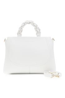 sac cabas effet cuir grainé avec anse tressée white