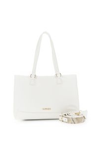 sac cabas effet cuir grainé avec bandoulière amovible en paille multicolore white
