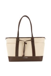 sac cabas effet toile avec finitions contrastantes effet cuir dark brown/beige