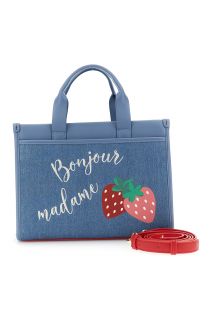 Sac cabas en toile effet nappa avec poche avant. sa structure est rehaussée d'un imprimé graphique et d'une inscription sur le devant pour une touche à la fois ludique et originale. doté d'une bandoulière amovible et d'une fermeture éclair contrastante il est pratique spacieux et idéal au quotidien. dimensions : 28.5 cm (longueur) × 20.5 cm (hauteur) × 13.5 cm (profondeur)
