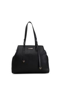 Grand sac cabas spacieux agrémenté de la possibilité d’ouvrir et fermer la partie supérieure du sac avec un mousqueton, le faisant changer de forme. Les poignées sont décorées par de fausses boucles