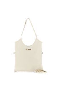 sac cabas plat en cuir martelé avec bandoulière amovible cream