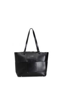 sac cabas sans doublure avec de larges bandes entrelacées black