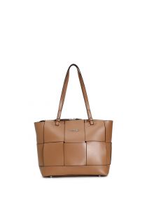 sac cabas sans doublure avec de larges bandes entrelacées tan