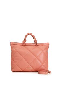 Sac cabas en matière souple avec matelassage en losange et poignée à chaîne avec fils apparents.