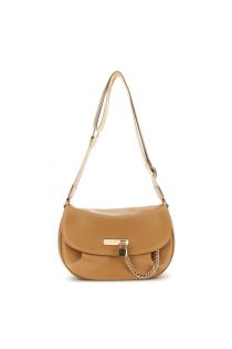 sac effet cuir avec accessoire métallique, cadenas et chaînette hazelnut