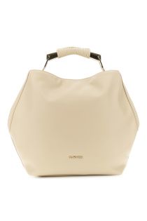 sac effet cuir avec poignée en métal et surpiqûres décoratives cream