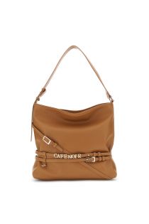 Sac en similicuir souple à l'aspect cuir grainé, orné de sangles à boucle et d'une inscription « café ». Un modèle spacieux, idéal au quotidien.