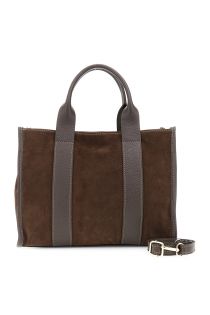 sac en daim avec anses en cuir martelé dark brown