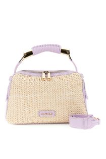 sac en raphia à rabat et finitions contrastées effet cuir cream/lilac