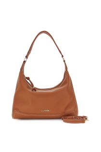 sac en similicuir grainé avec bandoulière amovible en paille multicolore rust