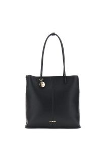 Sac cabas en similicuir avec anses tubulaires coulissantes, breloque amovible et inscription métallique. Un design épuré et polyvalent pour un style à la fois élégant et fonctionnel.