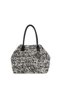 Sac fourre-tout en crochet en papier bicolore très spacieux qui peut être portée de deux manières (cordon de serrage interne).