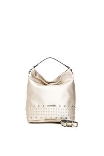 Sac style rock avec couleurs métallisées et rangées de cabochons de plusieurs tailles.