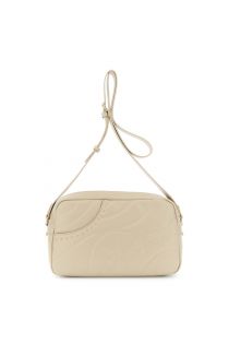 Sac photo en similicuir avec rembourrage matelassé à effet vague, rivets décoratifs et bandoulière réglable pour une utilisation pratique et polyvalente.