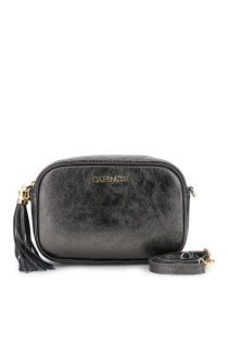 sac photo en cuir laminé avec bandoulière, mousquetons et pompon metal gun