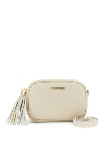 sac photo en cuir martelé avec bandoulière, mousquetons et pompon cream