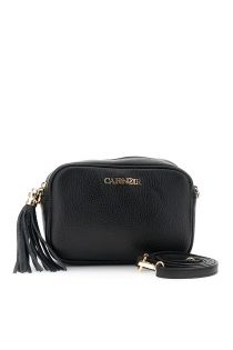 Sac photo en cuir martelé avec pompon latéral et bandoulière amovible à mousquetons. Compact et spacieux à la fois, il est parfait pour un look décontracté ou élégant.