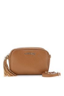 sac photo en cuir martelé avec pompon tan