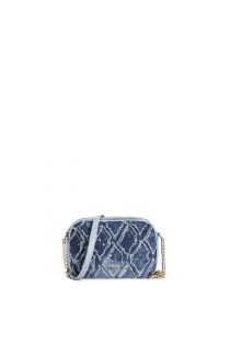 sac photo en jean avec rivets, strass, bandoulière chaîne et bandoulière jeans