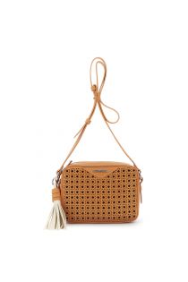 sac photo en matière effet cuir avec perforations géométriques sur le devant orange