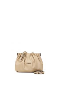 sac porté à l’épaule avec plis souples et chaînes biscuit