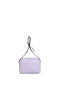 Sac pour appareil photo avec matelassage à cœurs concentriques et plaquette émaillée cafènoir à porter en bandoulière.