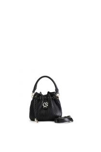 Sac seau avec cordon de serrage en matière métallique plissée avec détail logo en métal avec strass. bandoulière amovible.