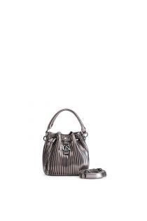Sac seau avec cordon de serrage en matière métallique plissée avec détail logo en métal avec strass. bandoulière amovible.