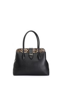Sac à provisions rigide avec cloison zippée en motif imprimé. sac enrichi d'une boucle avec micro clous dorés.
