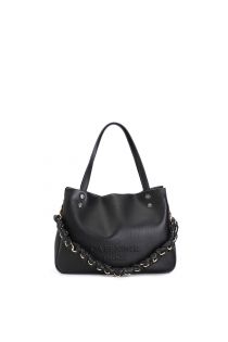 sac shopping avec logo embossé et bandoulière en chaîne tissée black