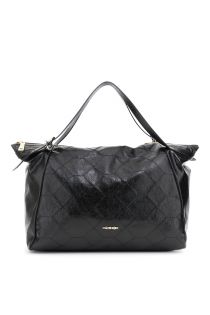 Sac cabas en similicuir métallisé souple, orné de broderies géométriques sur le devant, de bandoulières réglables avec boucle carrée et d'un lettrage métallique. Un style audacieux et spacieux.