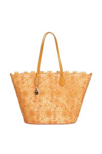 Sac cabas en dentelle avec doublure en tissu poignées effet cuir et breloque en métal avec chaîne. élégance raffinée et capacité idéale pour des looks décontractés et chics