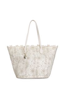 Sac cabas en dentelle avec doublure en tissu poignées effet cuir et breloque en métal avec chaîne. élégance raffinée et capacité idéale pour des looks décontractés et chics