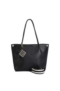 sac shopping en matière grainée et bandoulière en ruban amovible black