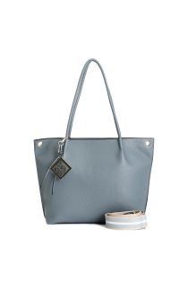 sac shopping en matière grainée et bandoulière en ruban amovible light blue