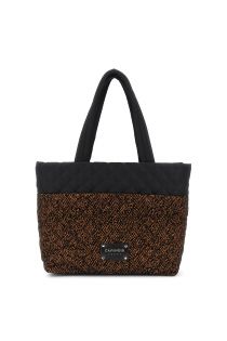 sac shopping en nylon matelassé avec imprimé floqué caramel/black