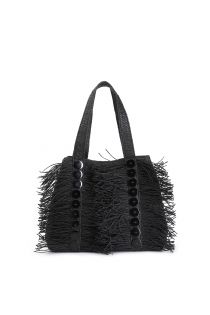 Sac shopping en raphia avec détails de franges et boutons décoratifs. design large et pratique parfait pour ajouter une touche originale à vos tenues d'été.