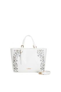 sac shopping fleuri découpé au laser avec rivets, poignées réglables et bandoulière amovible white